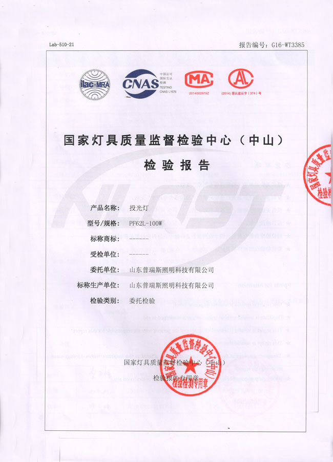 LED投光燈檢測(cè)報(bào)告